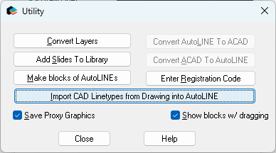 AutoLINE makes it easy to create and modify new linetypes. With dialog box functionality all you do is point and click. Creating shapes is easy too because AutoLINE will convert all your blocks into shapes for inclusion in AutoCAD-style linetypes.